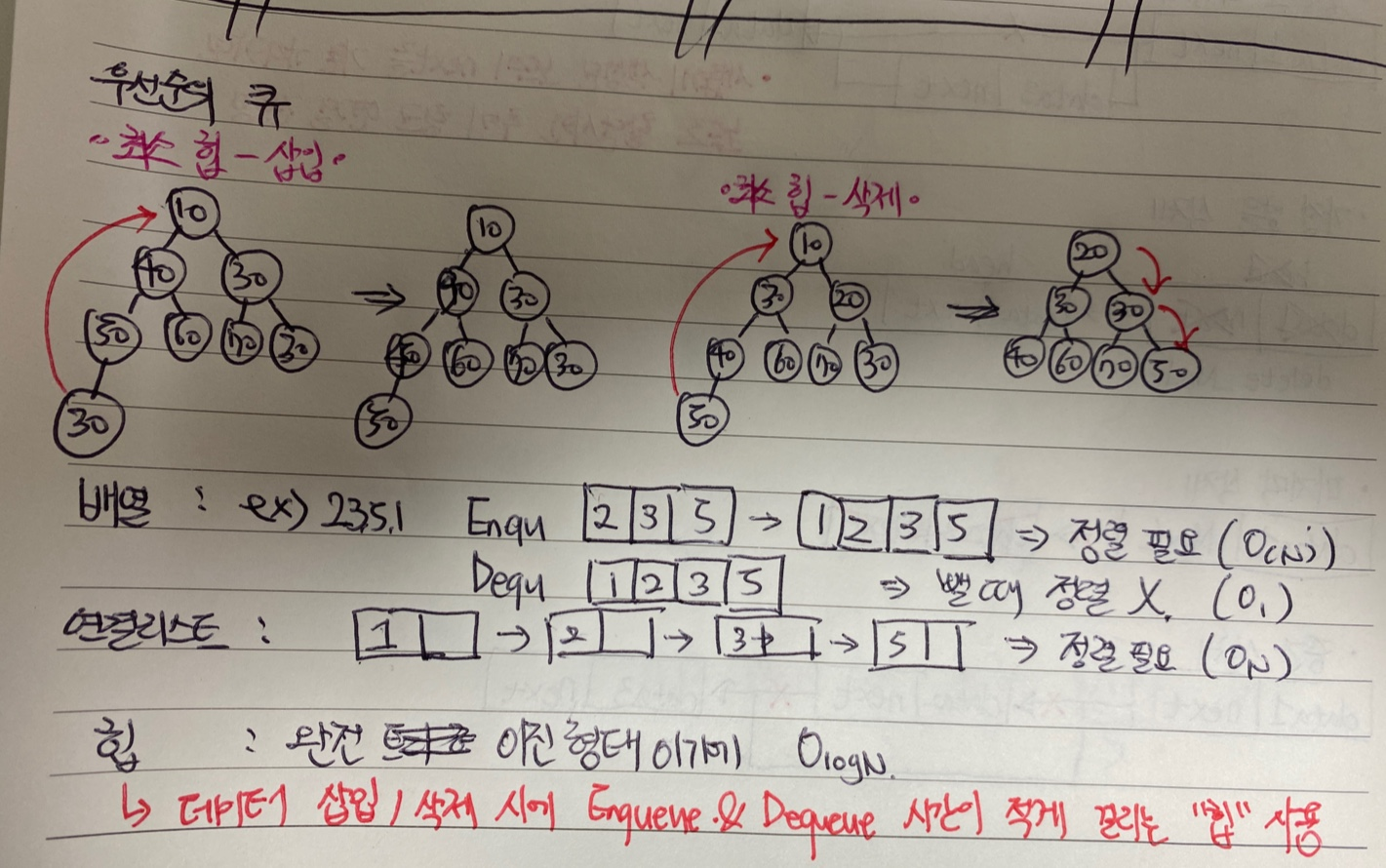 - 힙 -> 우선순위 큐 자료형 클래스는 힙으로 구성되어있다.